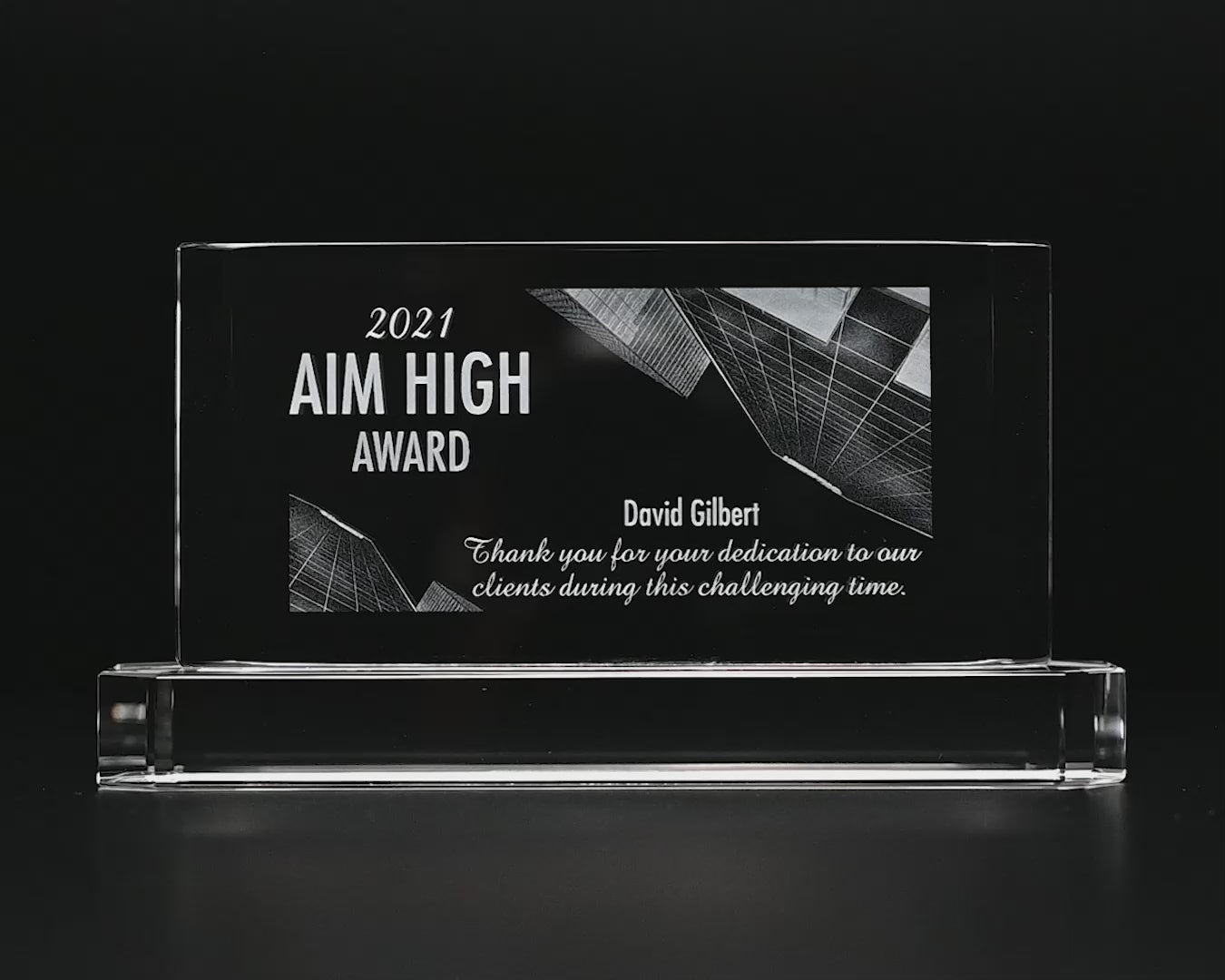 Capture a corporate message or incorporate your recipient's personal memory into the Ridgley Award. This one-of-a-kind award will be cherished for years to come.